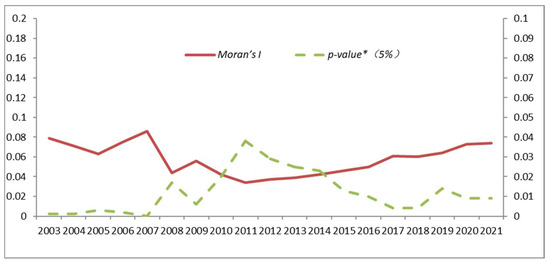 Global Moran’s I index in 31 provinces in China, 2003–2020.