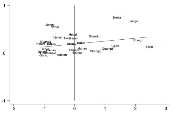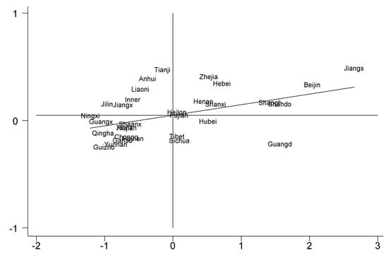 Chen [] highlighted the dependence of the Moran index I on the spatial weight matrix. Selecting an appropriate spatial matrix or employing diverse spatial matrices plays a crucial role in scrutinizing the robustness of results. Hence, the construction of the Section 3.2.1 spatial weight matrix is grounded in this critical consideration.