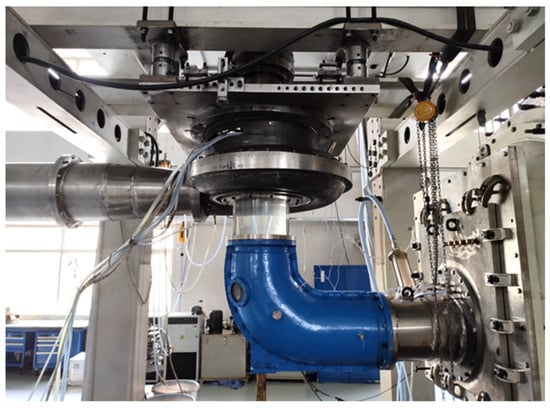 The hydraulic performance of the variable-speed centrifugal pump developed by the numerical calculation method is further validated through the model test method. The model test was carried out at a hydraulic mechanical model test rig, as shown in Figure 9.