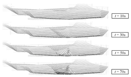 Generally applicable, empirical, predictive equations derived via statistical analyses of international data have been used to predict outflow volumes when landslide dams that develop after river blockages breach [51]. However, these equations employ logarithmic relationships (log-log graphs) and are associated with predictive errors. Detailed individual examinations (numerical calculations) that refer to the specific conditions in play are essential when analyzing how the disaster risks are affected by the outflow volumes of breached landslide dams. Simple models predicting the effects of breaching have been proposed, but further verification is necessary [52,53].