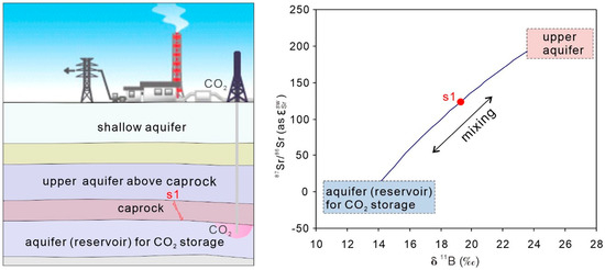Estimating the hydraulic connection between the aquifer (reservoir) for CO2 storage and the upper aquifer above caprock using isotopes. If there are some connections, the specific isotopes and other tracers (such as 87Sr/86Sr and 11B) may show a mixing trend near the possible connection site s1.