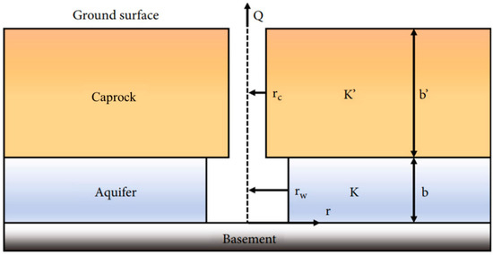 Deep aquifers, typically regarded as confined, are considered viable for CO2 sequestration and storage and are chosen for disposing of hazardous wastes [54,55,56,57]. Benson and Cole (2008) [54] specifically noted that aquifers deeper than 800 m, capped by thick, extensive aquitards, are appropriate for CO2 sequestration. However, it is now recognized that leakage is a potential issue for many crucial aquifers globally, and the integrity of underground waste storage may be affected by the varying vertical permeability of confining layers [54,56,58]. Consequently, there exists a persistent risk of CO2 leakage, underscoring the need for a deeper understanding of factors that contribute to leakage and how subsurface properties may evolve over time.