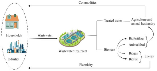 Wastewater may contain different components such as energy, nutrients, heavy metals, biopolymers and antibiotics [207,208,209]. Effluents from different sources are rich in different resources, depending on the point of waste generation. Hence, it is obvious that wastewater is a potential source of various resources, and different chemical and physical methods have been employed to extract these resources. For example, Yangui and Abderrabba [210] extracted polyphenols from olive oil wastewater via adsorption, and Li, et al. [211] separated proteins from soybean wastewater using complexation. Li, et al. [212] removed heavy metals using calcination with nitrogen, using magnesium chloride as an additive. However, these processes and energy demanding and not environmentally friendly, calling for “greener” alternatives.