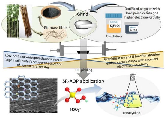 - Li, X.; Jia, Y.; Zhang, J.; Qin, Y.; Wu, Y.; Zhou, M.; Sun, J. Efficient removal of tetracycline by H2O2 activated with iron-doped biochar: Performance, mechanism, and degradation pathways. Chin. Chem. Lett. 2022, 33, 2105–2110. [Google Scholar] [CrossRef]