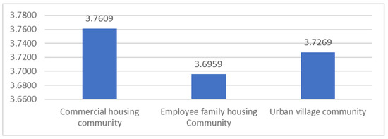 - In general, the highest score was for commercial housing communities at 3.7609, followed by urban village communities at 3.7269, and employee family home communities scored the lowest at 3.6959. In terms of community resilience to respond to sudden rainstorm disasters, commercial housing communities performed the best, followed by urban village communities. Employee family housing communities performed the worst.