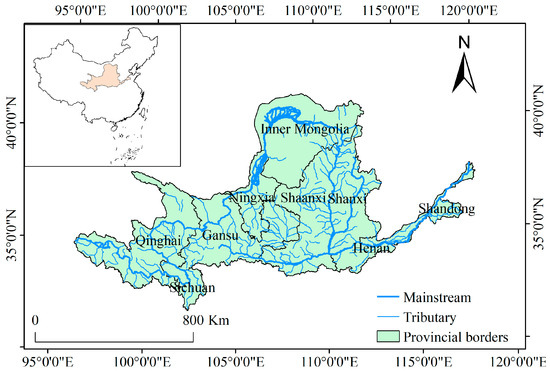 The Yellow River is the second longest river in China and fifth longest in the world, with an average annual runoff of 45.9 billion m3. There are 420 million people living in the nine ripirian provinces Yellow River Basin (YRB), yet its annual average per capita water resources are 473 m3, just 23% of the national average (Figure 1) [1]. The water resources in the YRB hold paramount economic and strategic significance; however, they are subject to substantial annual fluctuations and exhibit an uneven spatial distribution, as the Ningxia Autonomous Region stands out as the only province within the YRB, possessing a mere 0.89 billion cubic meters of water resources [2]. Furthermore, the existing engineering regulation capacity within the basin falls short, encompassing incomplete hydraulic infrastructure, inadequate water diversion projects, and an imperfect water resource-sharing mechanism, thereby impeding the resolution of the water supply and demand contradictions prevailing in the region. The insufficient endowment of water resources has become an important factor restricting the economic development of the YRB [3].