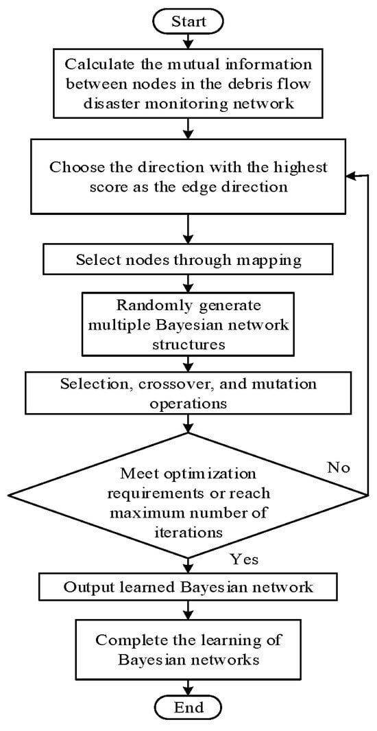 For the debris disaster monitoring network structure of nodes, the specific steps of learning the Bayesian network are as shown in Figure 2.