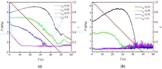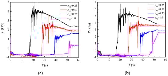 Influence of slip–stick vibration on pulsating pressure (H = 1.2 m): (a) esg = 0.25; (b) esg = 0.75.