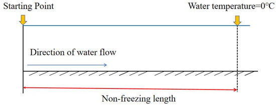 Under normal circumstances, hydraulic structures and ice-melting measures divide a channel into multiple unit sections. To improve the calculation accuracy and speed, the non-freezing length of unit sections is expressed, as shown in Equation (7). When , it indicates that the ice-melting measures adopted can realize ice-free water conveyance in the channel.