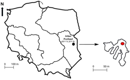 For the experiment, peat bog water and Utricularia vulgaris L. were sampled from the Jelino peatland in spring, summer, and autumn (eastern Poland, 51× N, 23× E; Figure 1). On this peatland are located small humic pools. Then, in laboratory conditions, an experiment was carried out with three treatments: a control treatment (C), a treatment with a twofold increase in the concentration of nitrogen compounds relative to the control sample (×2N), and a treatment with a fourfold increase in the concentration of nitrogen compounds relative to the control sample (×4N).