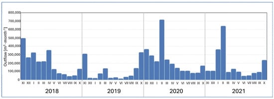 Amount of monthly outflow from the C9 Canal in 2018–2021.