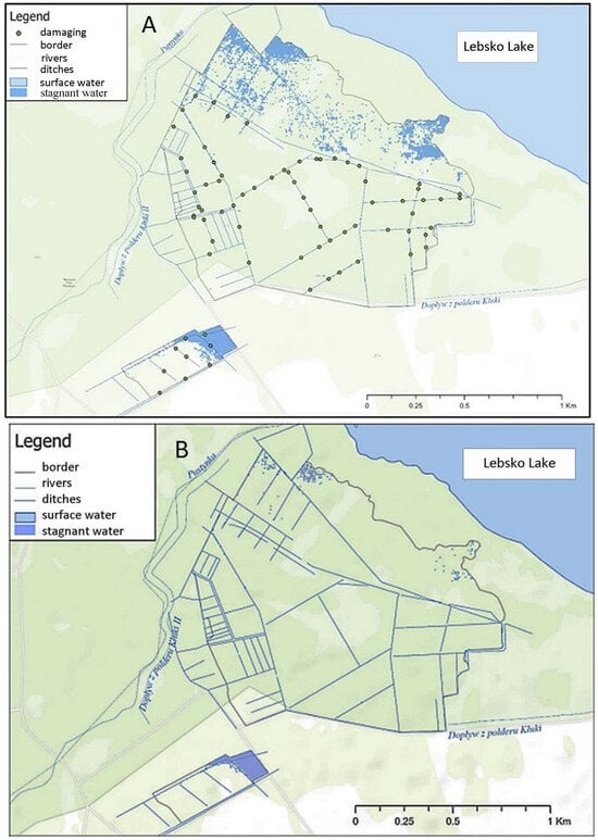 - Chlost, I.; Sikora, M. The impact of anthropogenic pressure on the change of water relations in Gardno-Łeba lowland. Quaest. Geogr. 2015, 34, 17–31. [Google Scholar] [CrossRef][Green Version]