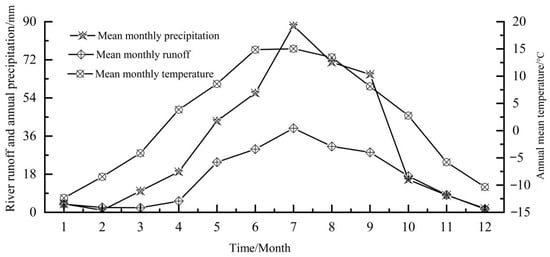 Interannual variability in the temperature, precipitation, and river runoff of the Dayekou Basin.