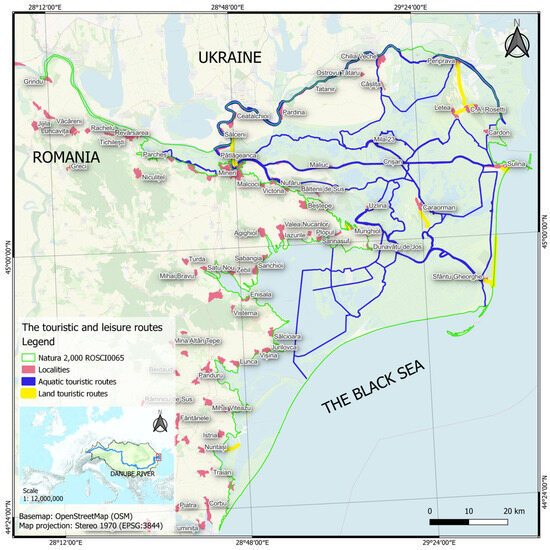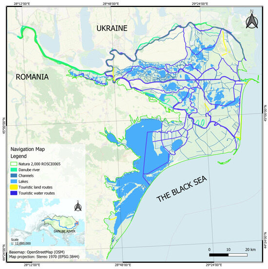 Data available on Delta Danube Biosphere Reserve official website regarding touristic routes were combined with authors’ data regarding water bodies in Danube Delta to focus on areas where touristic routes will have impact on transport [55].