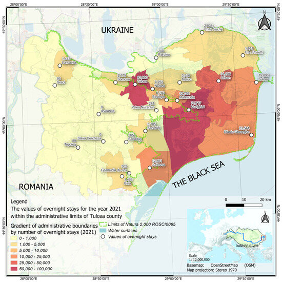 3.5. Focus Maps of the Total Number of Overnight Stays in Tourist Accommodation Structures within the Administrative Limits of Tulcea County