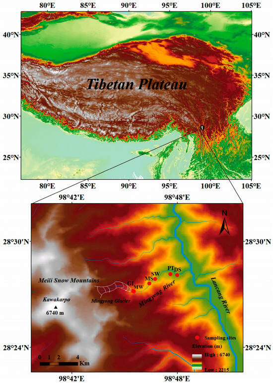 The authors would like to acknowledge the Forestry and Grassland Bureau of Deqin County, Meili Snow Mountain National Park Development and Operation Co., Ltd. of Deqin County for their assistance in field survey and sampling. Furthermore, we would like to thank the State Key Laboratory of Cryospheric Sciences and the Tianshan Glaciological Station of the Northwest Institute of Eco-Environment and Resources of the Chinese Academy of Sciences for their help in laboratory testing. We also thank Zongxing Li and researcher Baijuan Zhang of the Northwest Institute of Eco-Environment and Resources, Chinese Academy of Sciences, for their help in analyzing the data. Finally, we thank the editors and anonymous reviewers for their helpful comments regarding this paper.