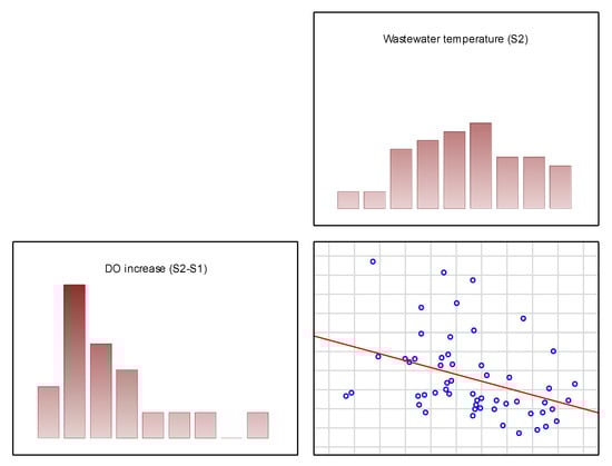 Matrix scatter plot of the total variables for the increase in oxygen content and effluent temperature in S2.