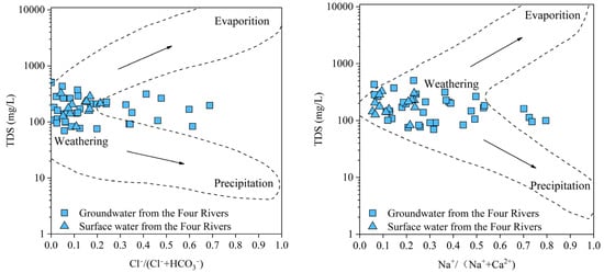 Gibbs map of groundwater and surface water in “the Four Rivers” water system area.
