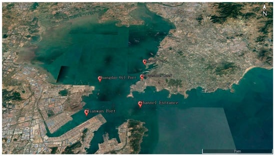 The study area serves as an essential hub for international economic and transportation networks within the area, accommodating an array of industrial operations and harbors, notably Qingdao Port—ranked as the sixth largest globally for container throughput, with approximately 23.7 million TEUs managed in 2021 []. The region’s high volume of shipping activities elevates the potential for oil spill incidents during transportation or loading and unloading operations. Moreover, the bay’s ecosystem, home to diverse marine life such as fish, crabs, and shrimp, faces heightened vulnerability to the detrimental impacts of oil contamination. The bay’s relatively shallow waters promote the rapid dispersal of oil spills, posing threats to fragile ecosystems and local communities. Pollution from such incidents could severely impact Jiaozhou Bay’s delicate habitats and its tourism industry. A significant event occurred on 25 November 1983, when the Panama-registered “Oriental Ambassador” vessel spilled 3343 tons of crude oil, affecting 230 km of coastline, 900,000 square meters of tidal areas, and over 15,000 mu of aquafarms, leading to substantial economic losses.