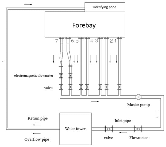 Schematic diagram of the overall model device. (1–7 is the pipe number).