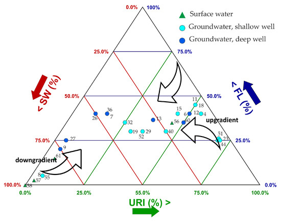 The following supporting information can be downloaded at: https://www.mdpi.com/article/10.3390/w16081106/s1, Table S1: Physical–chemical parameters and concentration of major and selected minor components dissolved in groundwater and surface water.