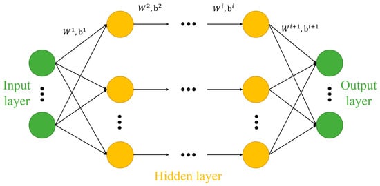 In the equation, represents the output of the i-th layer; denote the weights and biases, respectively, between the i-th and i−1-th layers; and R represents the activation function, with the ReLU function being adopted in this paper.