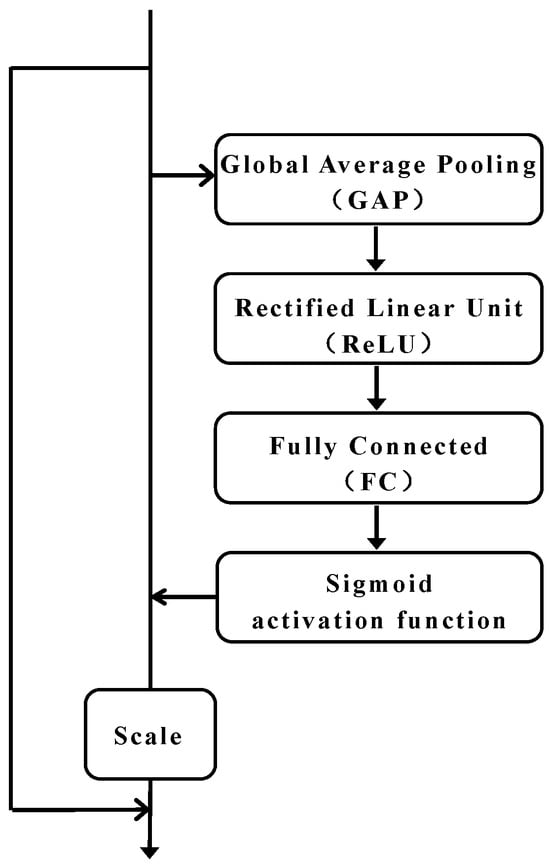 In TRCAM-Unet networks, in addition to enhancing the extraction of local features, the suppression of noise is also a key factor in improving the overall performance of the network. In deep learning, the attention mechanism allows the model to find the data that are more important to the current task out of a huge amount of data, reduce or eliminate other unimportant data, and then improve the processing efficiency and accuracy of the data. To this end, we added SEblock [25] to TRCAM-Unet to focus more on the water surface features while ignoring the noise in various complex backgrounds. SEblock is an attention module based on channel dimensions, which extracts the feature information that is beneficial to the task from each channel of the feature map and achieves the suppression of globally useless information. Meanwhile, similar to the hopping structure, SEblock adds the residual structure [26] to achieve the preservation of shallow features (regional features) in order maintain the feature information that originally existed in the feature map when changing the weights of the channels. The residual channel attention module is shown in Figure 10.