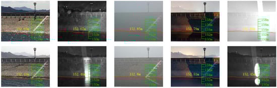 However, in engineering practice, complex and harsh environments characterised by night, light, rain, haze, snow, shadows, light and shadow transformations, floating objects, etc., create serious interference in intelligent visual water level recognition, which makes it difficult to achieve accurate water level monitoring using the above methods. Thus, effectively achieving accurate water level detection in complex and harsh environments has become a problem that needs to be solved urgently [12]. Moreover, existing methods also rely heavily on water stage gages, and few image-based water level detection methods without water stage gages have been reported [13]. The styles of water stage gages vary greatly, and they are “small target” objects in water level detection images, which poses a serious challenge to the robustness of the algorithm; at the same time, there are high requirements for a water stage gage based onsite, and its installation, maintenance, and ancillary facilities are costly. If a water level detection scheme without a water stage gage could be developed, this would improve the intelligence of water level detection systems.