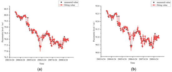 Fitting results for the seventh type of measuring point. (a) Fitting results of UP22 measuring points; (b) fitting results of UP24 measuring points.