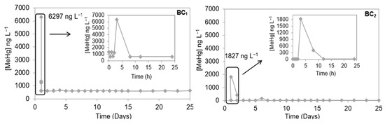 Figure 2 shows the results of the mercury methylation potential in microcosms BC1 and BC2. These experiments were analyzed for 25 days.