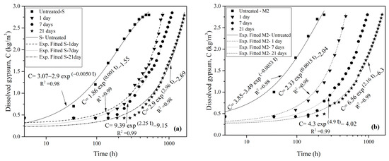 The measured Cs for calcium in all three gypsum samples was approximately 660 mg/L, which is equivalent to nearly 2.8 g of gypsum per liter. This finding aligns with the Cs value of 2.5 g of gypsum per liter in distilled water at 10 °C reported by James and Kirkpatrick [41]. Slight variations in the results may be attributed to experimental temperature fluctuations, water impurities, and titration errors.