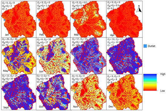 where Qpixel (m) is the spatial discharge map at the watershed level. Equations (15)–(18) separately were run 12 times to determine the annual monthly values.
