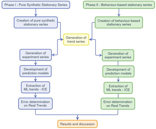 Using the defined stationary series and trends, a battery of experiments is generated by their combination to evaluate the ability of ML models to identify trends in the series.