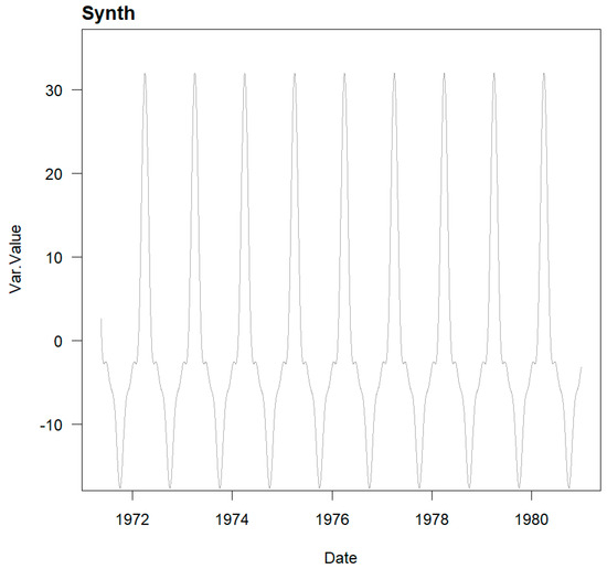 To obtain this kind of series, we started with the HTT model trained on a data set of n real data points from the radial movement of a direct pendulum in an arch dam, using the same expression as used to create the pure synthetic series.