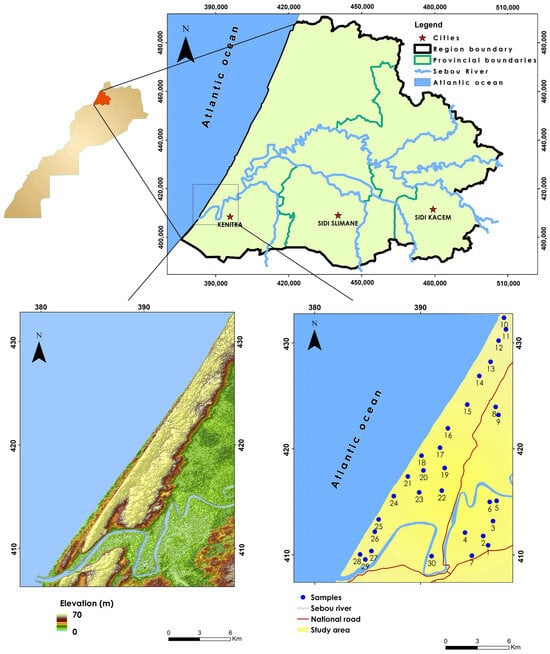 The Mnasra region, situated within the Gharb plain, is renowned as the most agriculturally productive area along the Atlantic Ocean, spanning an expanse of 488 km2. Its boundaries extend from the city of Kenitra in the south to the Sebou River, delineated by a parallel line which passes through Sidi Allal Tazi in the east, and stretches to Merja Zerga near Moulay Bouselham in the north. This region constitutes an integral component of the Gharb-subsidized sedimentary basin, which is nestled in the northwestern part of Morocco. Defined by distinctive geographical and geological attributes, the Gharb Plain is flanked by the Drader-Souier plain to the north and the Maamora plateau to the south, while being bounded by the expansive Atlantic Ocean to the west.