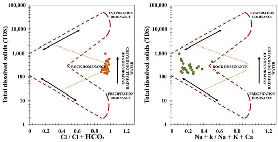 - Gibbs, R.J. Mechanisms Controlling World Water Chemistry. Science 1970, 170, 1088–1090. [Google Scholar] [CrossRef] [PubMed]