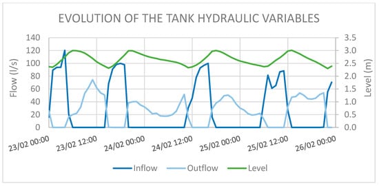 In the case of balance tanks, their operating regime is not regular, so it is not possible to determine the daily renewal rate a priori. Therefore, low daily renewal rates are expected when the tank is almost full, and high renewal rates are expected in certain situations when the network demands high flows from them (emergencies).