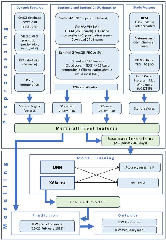 The methodology was implemented and tested on a study area on the Great Hungarian Plain but can be applied at other locations with similar geographic characteristics. The models are implemented using open-source libraries and the Sentinel satellite data are freely available for large parts of the world. The other data sets on land cover, meteorology, soil, elevation, and anthropogenic factors (distance from built environment, roads, cities, and canals) are available for most places in the world.