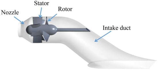 For numerical simulation, the ICEM 2022R1 grid software was employed to generate hexahedral grids for the intake duct, rotor, stator, and nozzle as depicted in