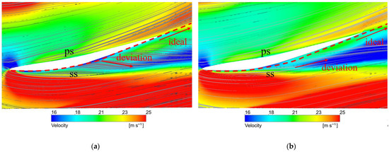 Figure 15b. This reduction leads to a decrease in CSV intensity, resulting in streamlines becoming closer to the ideal condition, as depicted in