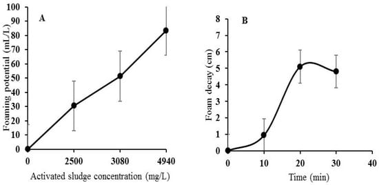 3.1. Foaming Potential (Foamability) of the Activated Sludge