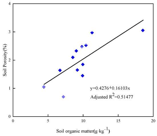 Relationship between soil organic matter and soil porosity.