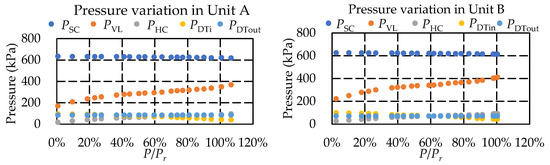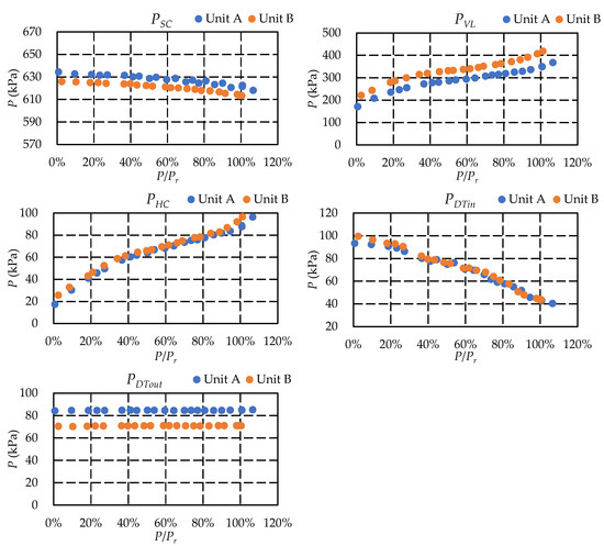 Pressure variation of different measurement points in Unit A and Unit B.