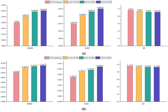 Predictive effectiveness of different spatiotemporal prediction models. (a) Performance of different predictors at site JH-13. (b) Performance of different predictors at site JH-4.