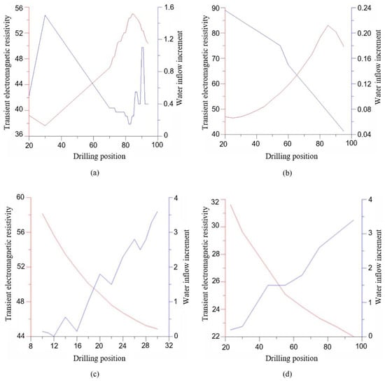 - According to the experimental results obtained, it can make the construction of mine water exploration holes more purposeful. In roadway excavation, if the site meets the detection requirements, the abnormal low-resistance area in the test area can be exposed by drilling first. The degree of structural development and the peak value of water gushing in the target area have been mastered. Then, it is determined whether it is necessary to increase borehole exploration in other relatively high-resistance low-risk areas.