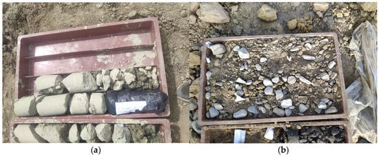 Borehole information for the study area. (a) Upper Triassic Nanying’er Formation sandstone; (b) Quaternary Holocene floodplain sand pebbles.