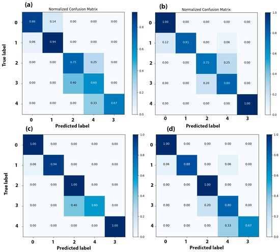 Output Layer: The last layer, dense_2, has an output shape of (None, 5) with 165 parameters, and it produces the classification result across five classes, as shown in Table 3. Using the softmax activation function, this layer outputs a probability distribution across the classes, making it suitable for multi-class classification.