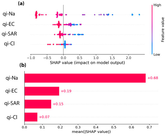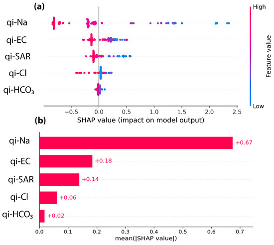 Specifically, in Model 16—which includes qi-EC, qi-SAR, qi-Na, qi-Cl, and qi-HCO3—the CNN-BiLSTM model achieved an accuracy of 0.94, with micro precision, recall, and F1 scores of 0.94. The model also attained a macro precision of 0.925, a macro recall of 0.908, a macro F1 score of 0.899, and an AUC of 0.994. These results demonstrate that the CNN-BiLSTM model outperforms other models, establishing it as the most effective choice for this specific classification task. The SHAP analysis further emphasizes the importance of key features, particularly qi-Na, in the model’s predictive performance. Future studies should focus on improving the efficiency of these models to achieve high accuracy with reduced computational cost. Expanding this study to include a broader sampling area across different zones and regions of the country could help generalize the findings. Additionally, exploring hybrid approaches that leverage the strengths of various architectures and incorporating techniques like attention mechanisms could enhance model performance. Collaborating with domain experts to integrate specialized knowledge into the models may also improve predictive accuracy. Together, these advancements could lead to better practices in water quality management, ultimately supporting agricultural productivity and sustainability.