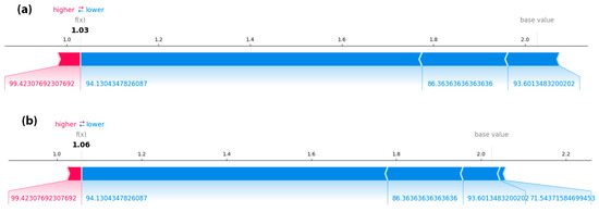 SHAP is a widely used method for explaining how individual features influence model outcomes [66,67]. In SHAP, a value is assigned to each feature, representing its contribution to the final prediction. This approach has become increasingly popular in machine learning as it provides practitioners with a clear understanding of how each feature impacts model behavior and outputs [68,69]. SHAP-based feature selection is particularly useful for identifying which features have the greatest influence on a model, allowing for streamlined, transparent models. SHAP values are rooted in concepts from game theory, where a fair allocation of rewards among players is possible. In this analogy, the features are the “players”, and the model’s prediction is the “reward”. SHAP values reveal each feature’s contribution to the final prediction. To achieve a fair measure of feature importance, SHAP considers all possible feature combinations and estimates the change in the model output when adding or excluding a feature from a combination [70]. The Shapley value represents the average importance of a feature in making a prediction, accounting for interactions among all features. This ensures an equitable distribution of importance across features, considering all possible feature combinations.