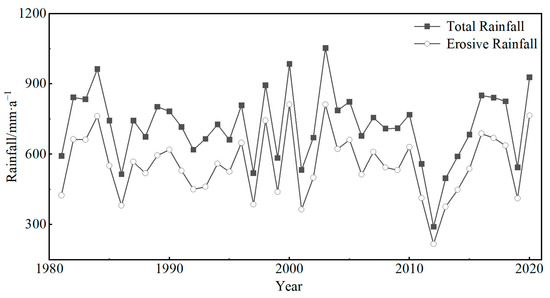 Changes of total rainfall and erosive rainfall in Henan from 1981 to 2020.